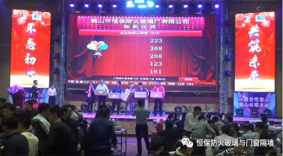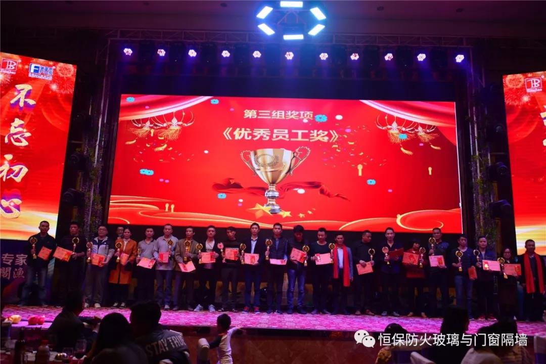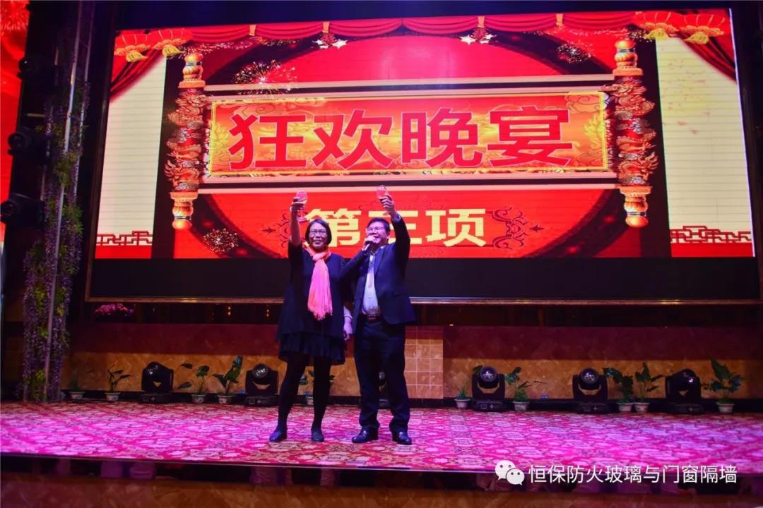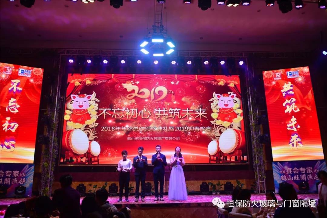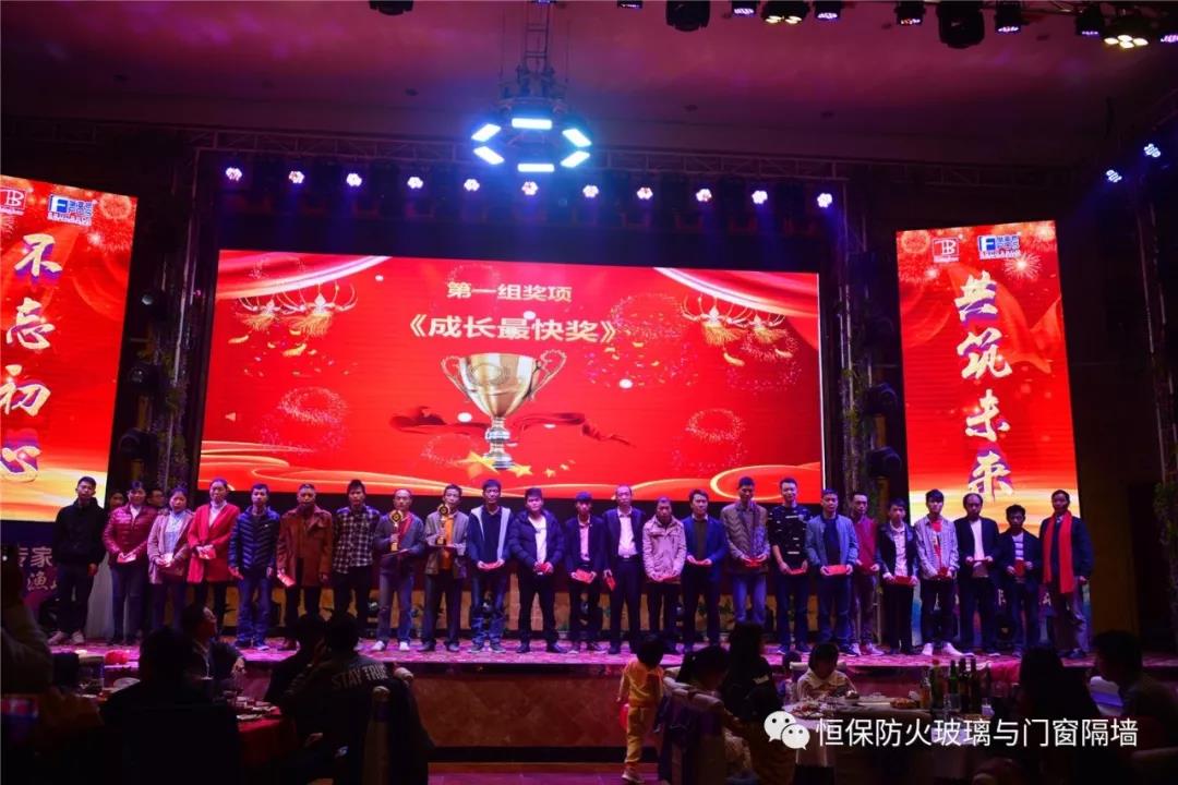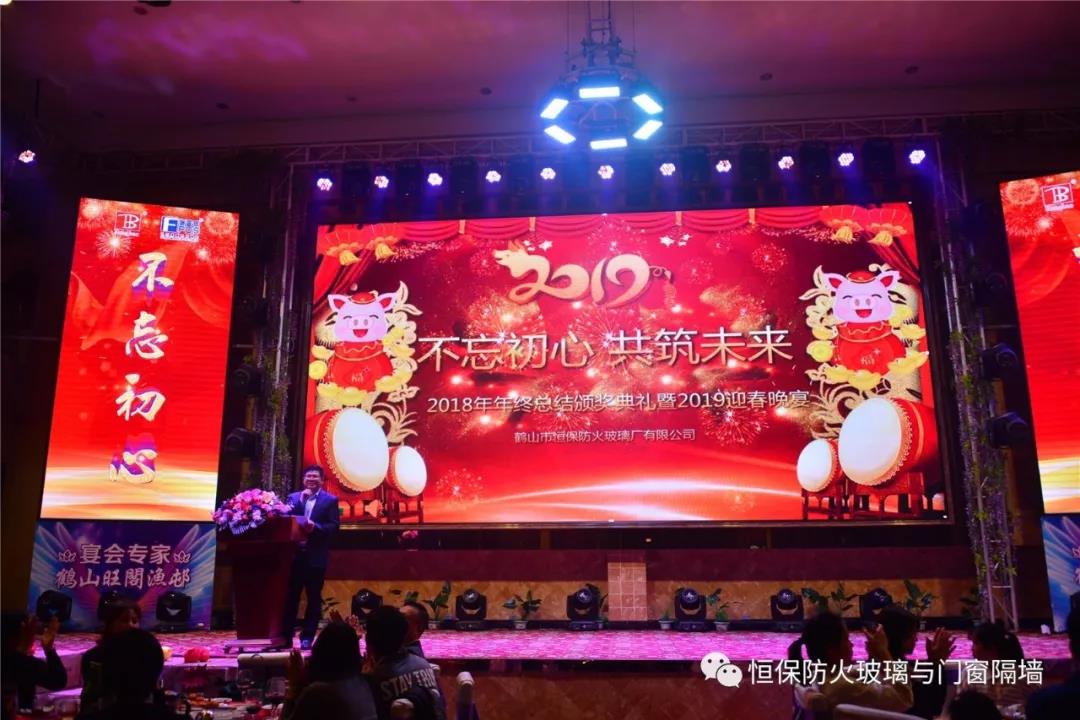 19:30分,恒保年會在鼓舞飛揚中拉開了帷幕,首先是恒??偨?jīng)理陳沃林先生做年終致辭,陳總回顧了2018年所取得的成績與不足,并提出了2019年恒保要全力以赴,不忘初心,繼續(xù)奮斗,再創(chuàng)佳績的戰(zhàn)略方針。2018年是恒??缭桨l(fā)展的一年。全體恒保家人,團結(jié)一心,艱苦奮斗,全力實現(xiàn)了公司既定的年度目標,同比各項重要指標增長逾80%。2018年我們大力引進新設(shè)備,開發(fā)新產(chǎn)品10多項,產(chǎn)品通過國家檢測20多項 ,至此,恒保出品已擁有37個3C認證,158份檢驗報告,成為行業(yè)內(nèi)公認通過國家檢驗、認證最多的防火玻璃門窗企業(yè);2018年在行業(yè)各類權(quán)威獎項評比中,榮獲“全國鋁門窗幕墻展 年度星品獎”、榮獲“新玻網(wǎng) 門窗玻璃十強企業(yè)”、陳沃林總經(jīng)理榮獲鶴山市工商聯(lián)系統(tǒng)“工匠之星”稱號、陳沃林總經(jīng)理榮獲第五屆中國玻璃行業(yè)“玻璃工匠”稱號、榮獲第三屆建筑門窗金軒獎“最具創(chuàng)新力配套產(chǎn)品”、榮獲第三屆建筑門窗金軒獎“最具發(fā)展?jié)摿ζ髽I(yè)”、榮獲中國門窗幕墻行業(yè)“科技進步推動獎”等十多項獎項。2019年我們將持續(xù)優(yōu)化各部門管理,提高員工工作技能、提高生產(chǎn)管理水平、提高生產(chǎn)效率、提高綜合管理能力,減少物料損耗,減少出錯率。加強精密型材、新型防火門窗的開發(fā),滿足不同客戶的需求。2019年恒保上下一心、同心協(xié)力、不忘初心,共筑未來,為實現(xiàn)中國平安夢、世界平安夢繼續(xù)奮斗!