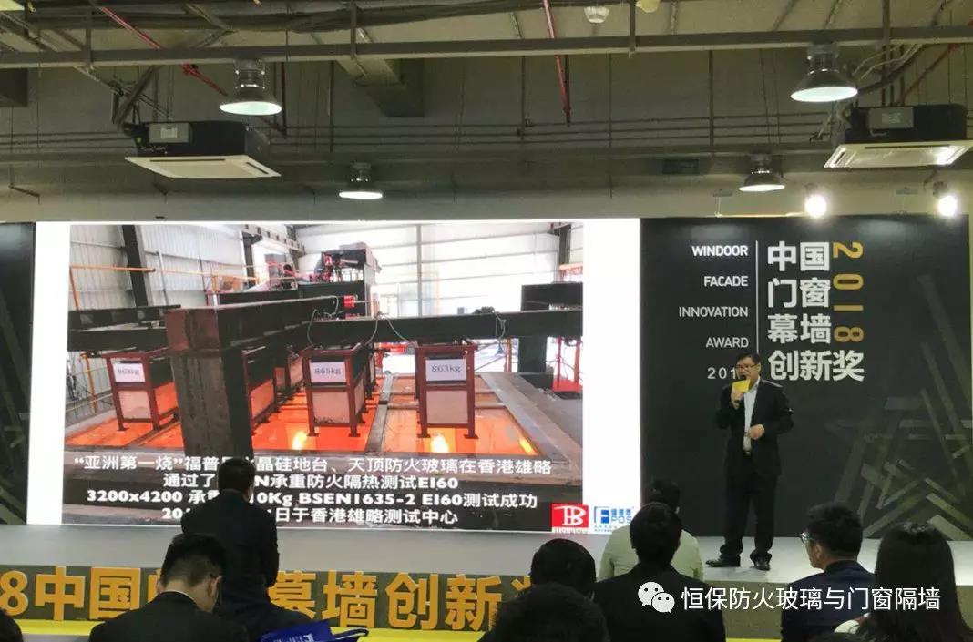 在本次展會(huì)中,恒保·福普思公司總經(jīng)理陳沃林還參加了“2018中國(guó)門(mén)窗幕墻創(chuàng)新獎(jiǎng)--星品發(fā)布會(huì)” 活動(dòng),演講主題為“防火玻璃地臺(tái)采光頂?shù)臏y(cè)試與應(yīng)用”,獲得了現(xiàn)場(chǎng)聽(tīng)眾的肯定與支持,并在會(huì)后解答了各方來(lái)客的問(wèn)題。
