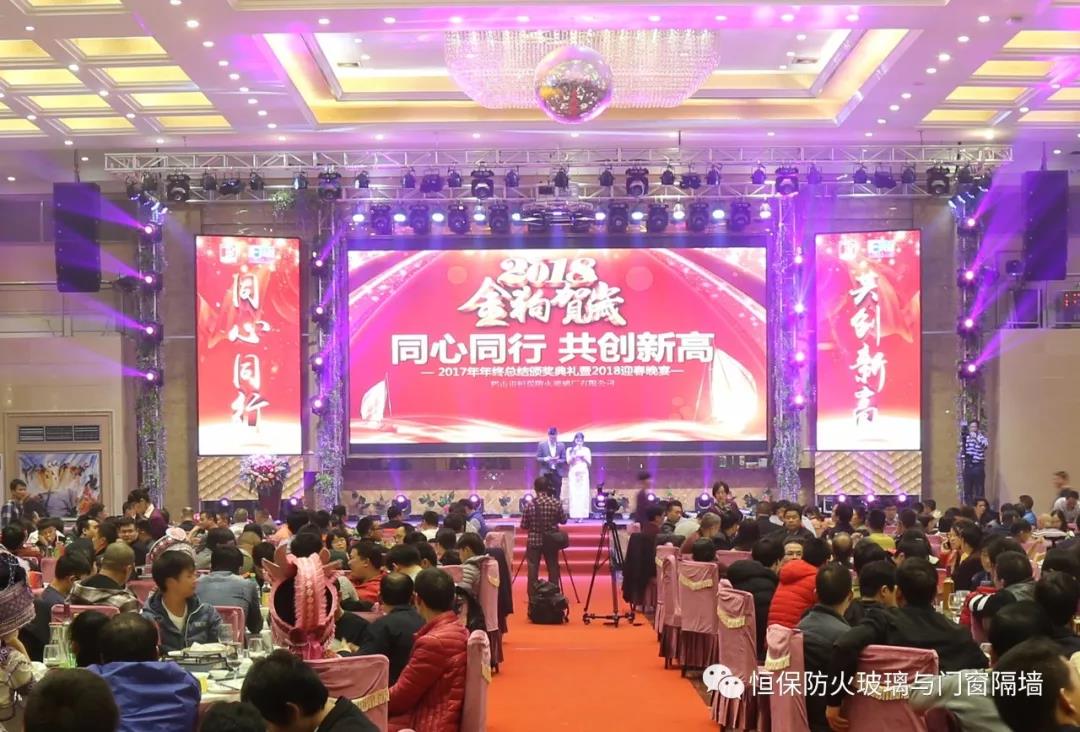 鞭竹炮響辭舊歲,瑞犬報(bào)喜賀新年!1月20號(hào)鶴山市恒保防火玻璃廠有限公司2017年年終總結(jié)頒獎(jiǎng)典禮暨 2018年迎春晚會(huì)在歡聲笑語中奏響了幸福的音符!