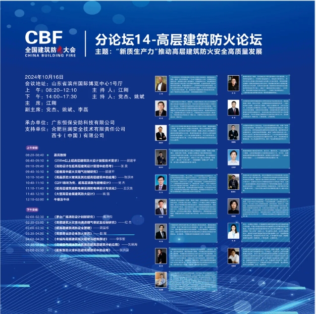 本次論壇的主題為:“新質(zhì)生產(chǎn)力”推動高層建筑防火安全高質(zhì)量發(fā)展。本次論壇邀請17位嘉賓為高層建筑防火難題作技術(shù)報告。